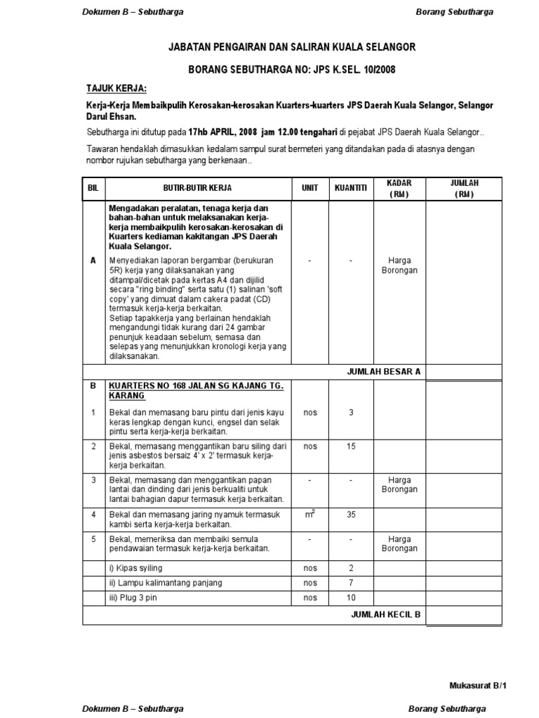 Contoh borang sebut harga kerja 23. 06 hari 03 jam 18. Semua ruangan yang disediakan dalam borang ini adalah mandatori untuk diisi.